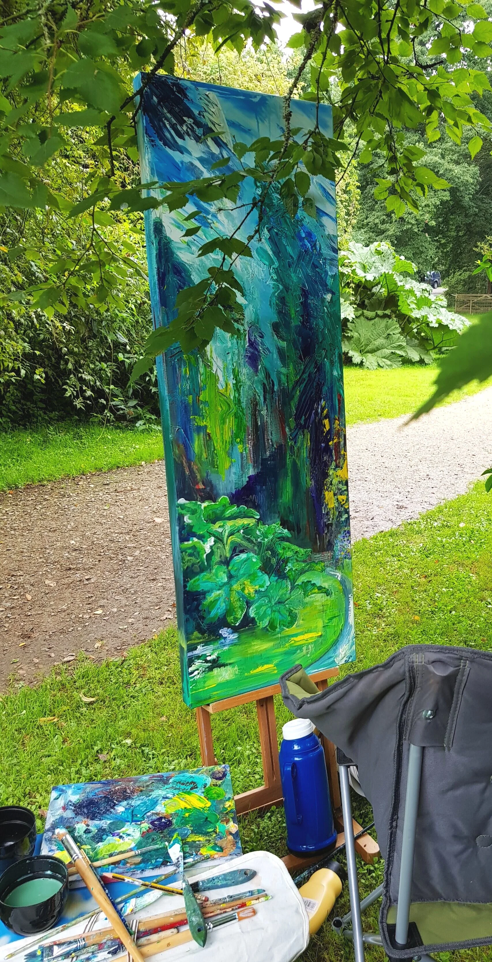 This exhibition showcases her recent work. Living in Abergavenny she is fascinated with the ever-changing colours, textures and moods capturing them with her unique view. She will often sketch very detailed pencil drawings, in-stu, to capture the profile and record the paths and distant sheep trails, then back in the studio the paintings emerge into a rich tapestry of colour, marks and textures using a range of media from iridescence and florescent inks to resin and raw pigments, oil to water-soluble crayons. Her inspirations are wide and varied from the fauves and abstract expressionism to Mary Lloyd Jones and David Tress. Thought-out her years of creating she is interested in contrasts: - of colours, textures, scale, mood, and marks, creating energy, perspective and atmosphere in her work. Her paintings have energy and delight the eye. Her studio is based at Craft Renaissance near Chainbridge where She has developed a range of art workshops, and is open to the public alongside the Cafe and Gallery.