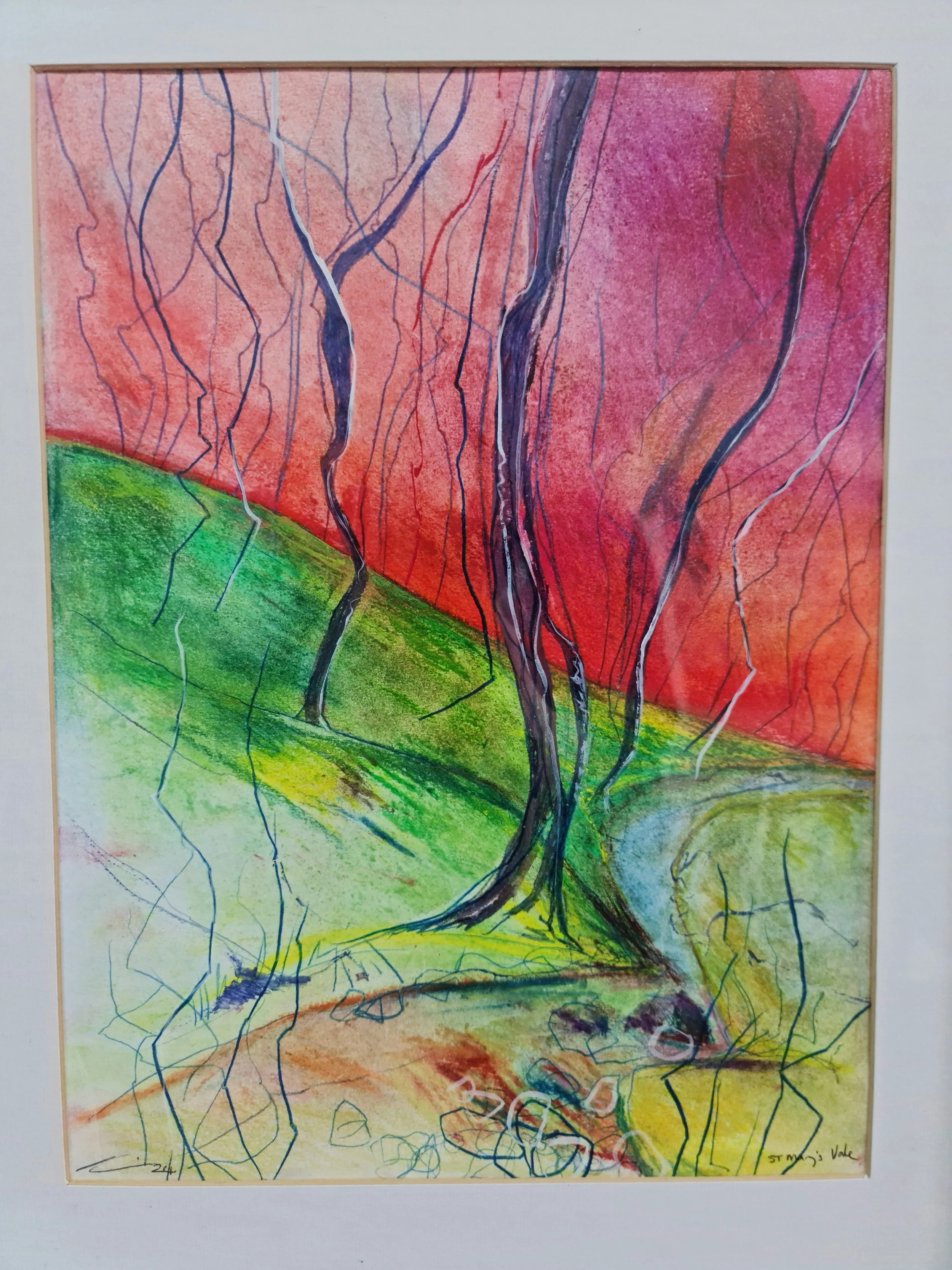 Mixed Media framed in the stylish green frame